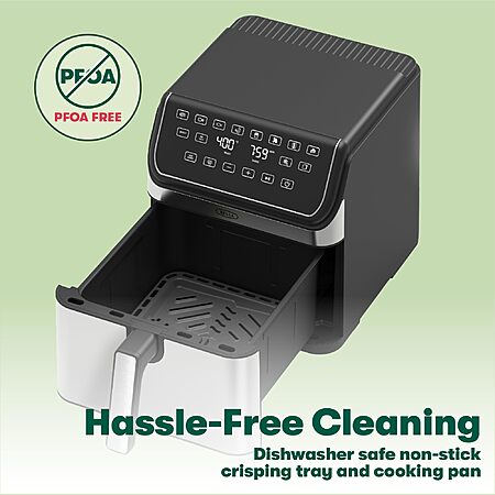 Model: BELLA 8 Qt Digital Air Fryer with TurboCrisp Technology, Large Family Size Nonstick Cooking Basket and Crisping Tray, Multiple Preset Functions, Auto Shutoff, Stainless Steel, 1750 Watt