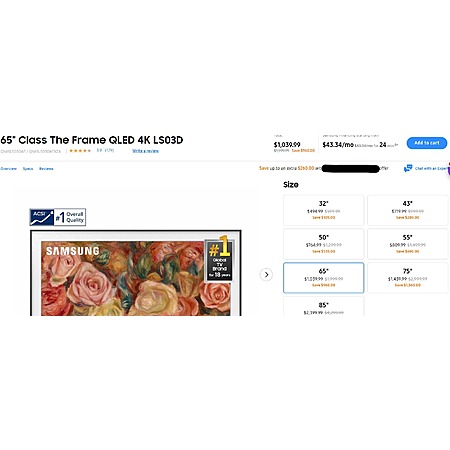 Samsung offers EPP/EDU Members: Samsung The Frame LS03D 4K HDR Smart QLED TVs (2024) on sale when you follow the instructions below. Shipping is free.