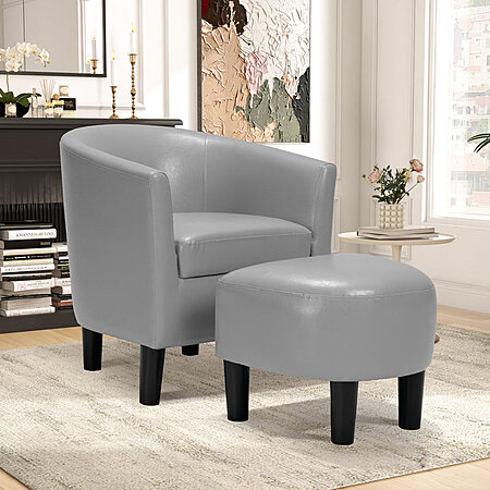 26.1" Ebern Designs Cahanding Upholstered Barrel Chair & Ottoman (Gray) $106.99 + Free Shipping