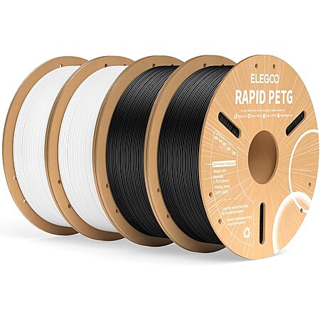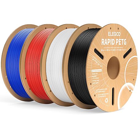 ELEGOO Official US via Amazon has 4-Count of 1KG ELEGOO Rapid 1.75mm PETG Filament (various) on sale for $41.62 when you checkout via Subscribe & save. Shipping is free.