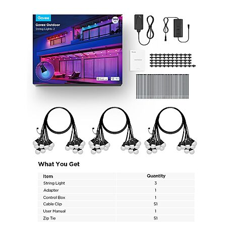 Model: Govee Smart Outdoor String Lights 2, 144ft RGBIC Outdoor Lights with Dimmable Warm White LED Bulbs for Christmas, 47 Scene Modes for Patio, Backyard, IP65 Waterproof, Works with Alexa, App Control