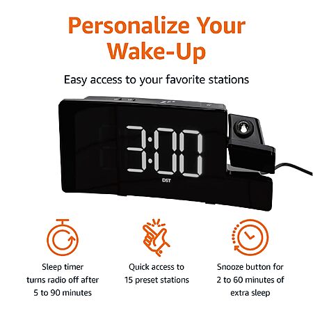 Amazon Basics Projection Alarm Clock w/ FM Radio, USB Phone Charging, Battery Backup $8.49 + Free Shipping w/ Prime or on $35+