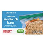 100-Count Amazon Basics Reclosable Double Zipper Sandwich Storage Bags