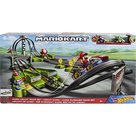 Hot Wheels Mario Kart Circuit Track Set w/ Booster & Mario & Yoshi Kart Vehicles