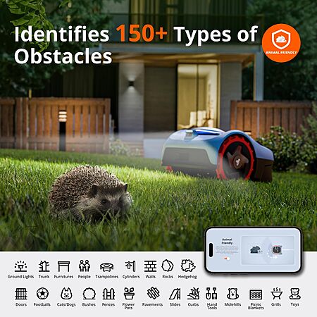Identifies 150+ Types of Obstacles: Compared to ultrasonic sensors or bumper, Navimow's 140° field-of-view camera with built-in Al algorithms can detect 150+ types of common objects in the garden to ensure stronger obstacle avoidance capabilities and a higher level of safety.
