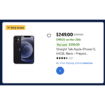 | Product Description: | Welcome to the new era of iPhone. With the iPhone 12 in Black from Straight Talk, you can use the ultrafast 5G to download huge files on the go and stream HDR video anytime anywhere.1 Take it all in with the beautifully bright 6.1-inch Super Retina XDR display2 that's protected with Ceramic Shield with 4x better drop performance.3 Take stunning photos, even at night with incredible low-light photography with a new advanced dual-camera system. Edit photos, browse and multitask better than ever with the powerful A14 Bionic chip and the 4GB RAM Memory. You're covered wherever you go, thanks to coverage on the network America relies on with Straight Talk. Find your next phone and choose from a range of talk, text and data plans either online or by heading to your local Walmart. 6.1-inch Super Retina XDR display2 Ceramic Shield, tougher than any smartphone glass 5G for superfast downloads and high-quality streaming1 A14 Bionic chip, the fastest chip ever in a smartphone 4GB RAM Memory Advanced dual-camera system with 12MP Ultra Wide and Wide cameras; Night mode, Deep Fusion, Smart HDR 3, Apple ProRAW,5 4K Dolby Vision HDR recording 12MP True Depth front camera with Night mode, 4K Dolby Vision HDR recording Industry-leading IP68 water resistance6 Supports Mag Safe accessories for easy attach and faster wireless charging4 iOS 14 with redesigned widgets on the Home screen, all-new App Library, App Clips, and more Straight Talk utilizes the network with the most first place rankings in RootMetrics® 1H 2023 5G reliability assessments of 125 metros. Results may vary. Not an endorsement †5G access requires a 5G-capable device in a 5G coverage area Pair this phone with a best-selling no-contract Straight Talk plan Learn more about Straight Talk by visiting our Brand Page 1Data plan required. 5G is available in select markets and through select carriers. Speeds vary based on site conditions and carrier. For details on 5G support, contact your carrier and see Apple website. 2The display has rounded corners. When measured as a rectangle, the screen is 6.06 inches diagonally. Actual viewable area is less. 3Claim based on iPhone 12 Ceramic Shield front compared with previous-generation iPhone. 4Accessories are sold separately. 5iPhone 12 is splash, water, and dust resistant and was tested under controlled laboratory conditions with a rating of IP68 under IEC standard 60529 (maximum depth of 6 meters up to 30 minutes). Splash, water, and dust resistance are not permanent conditions. Resistance might decrease as a result of normal wear. Do not attempt to charge a wet iPhone; refer to the user guide for cleaning and drying instructions. Liquid damage not covered under warranty. |