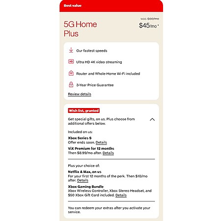 Also, the 5g home internet kept having intermittent connection problems even though I am literally 2 blocks away from a Verizon 5g tower. It was such an annoying issue because I work from home. I cancelled the service exactly 1 day after the 6 months required to keep the promotional deal.