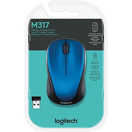 Model: Logitech M317 Wireless Mouse, 2.4 GHz with USB Receiver, 1000 DPI Optical Tracking, 12 Month Battery, Compatible with PC, Mac, Laptop, Chromebook - Blue