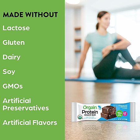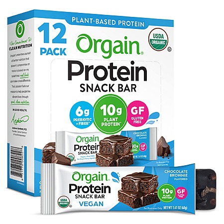 Model: Orgain Organic Plant Based Protein Bar, Chocolate Brownie - 10g of Protein, Vegan, Gluten Free, Dairy Free, Soy Free, Lactose Free, Kosher, Non-GMO, 1.41 Ounce, 12 Count (Packaging May Vary)