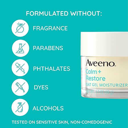 Model: Aveeno Calm + Restore Oat Gel Facial Moisturizer for Sensitive Skin, Fast-Absorbing, Soothing Lightweight Gel Cream with Prebiotic Oat & Feverfew, Fragrance-Free & Hypoallergenic, 1.7 oz