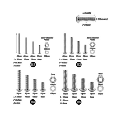 1290 Pieces M2 M3 M4 M5 Screw Assortment Kit - 304 Stainless Steel Socket Head Metric Screws, Bolts, Flat Washers, Nuts, and Hex Wrenches (2 codes needed) $18