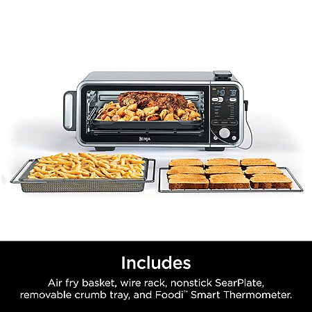 Ninja via Amazon has Ninja, Toaster Oven, Air Fryer, Thermometer, Toaster Oven Air Fryer Combo, Stainless Steel, Quick meals, Fries, Frozen Food, Air Fry, Dehydrate, Reheat, 13-in-1,Less Oil, Flip Away Oven, Foodi, SP351