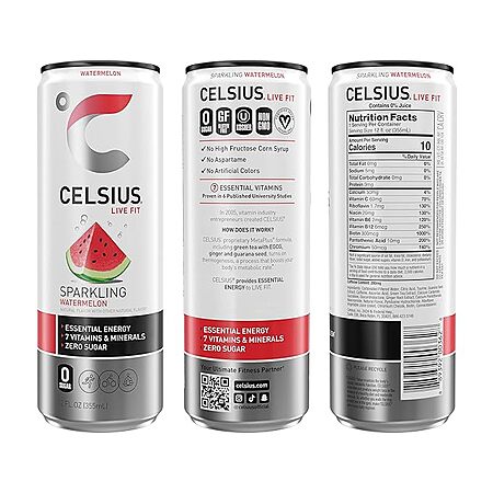 Amazon.com: CELSIUS Sparkling Watermelon, Functional Essential Energy Drink 12 Fl Oz (Pack of 12) $15.16