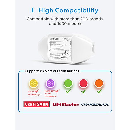 Model: meross Smart Wi-Fi Garage Door Opener Remote, APP Control, Compatible with Alexa, Google Assistant and SmartThings, No Hub Needed