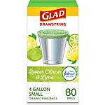 80-Ct 4-Gal Glad Odorshield Drawstring Trash Bags (Citron or Beachside Breeze)