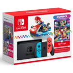| Product Description: | Bring home the fun with a Nintendo Switch™: Mario Kart™ 8 Deluxe Bundle —an added value of $79.98* Nintendo Switch™: Mario Kart™ 8 Deluxe Bundle Nintendo Switch™ bundle includes a console, the Mario Kart™ 8 Deluxe game, and 12 months of Nintendo Switch Online. This bundle has everything you need to start playing right away, including a Nintendo Switch™ system with Neon Red and Neon Blue Joy-Con™ controllers. Plus, enjoy an added value of $79.98* with a full download of the full Mario Kart™ 8 Deluxe game and a 12-month Nintendo Switch Online Individual Membership**. You can start multiplayer races right out of the box—just pass a Joy-Con controller to a friend and play together on the same system. Or pick up more controllers (sold separately) and get up to 4 people in on the fun. Play at home or on the go with one system The Nintendo Switch system is designed to go wherever you do, instantly transforming from a home console you play on TV to a portable system you can play anywhere. So you get more time to play the games you love, however you like. Race with Mario and friends anytime, anywhere! Burn rubber across Mushroom Kingdom raceways—underwater, in the sky, upside-down in zero-g, and past the finish—for the win! Get revved up for local multiplayer***, online**** in-game tournaments, a revamped battle mode, and more! Race players around the world with Nintendo Switch Online With the included Nintendo Switch Online membership, up to 12 people can play together online in Grand Prix, VS Race, and Battle modes. Plus, you can enjoy online play in other multiplayer games like Splatoon™ 3. A membership also includes access to a library of 100+ classic Super NES™, NES™, and Game Boy™ games, exclusive special offers, and more. Home of Mario and friends! Nintendo Switch systems are home to games like Super Mario Bros.™ Wonder, Luigi’s Mansion™ 2 HD, Super Mario Odyssey™, Minecraft: Mario Edition, and more. And don’t forget series like Animal Crossing™, The Legend of Zelda™, Splatoon™, Pikmin™, and beyond! *Value based on manufacturer's suggested retail price when purchased separately. Actual savings may vary. **Included membership auto-renews after initial term at the then-current price unless canceled. Not available in all countries. Internet access required for online features. Terms apply. nintendo.com/switch-online ***Additional accessories may be required for multiplayer mode. Sold separately. ****Any Nintendo Switch Online membership (sold separately) and Nintendo Account required for online features. Membership auto-renews after initial term at the then-current price unless canceled. Not available in all countries. Internet access required for online features. Terms apply. nintendo.com/switch-online © Nintendo. |