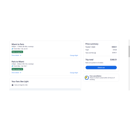 French Bee Airlines, an ultra low-cost air carrier via Expedia have round trip airfares travelling from Miami (MIA) to Paris France (ORY) for $369, nonstop. This low fare is "bee basic" so you're only allowed a personal item that fits under the seat in front of you. There is no seat selection, no carry-on bag and no change. You may purchase additional services at check out.