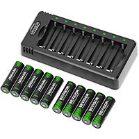 Charger is not good (can only charge in pairs), batteries are made in China, and AA batteries are only 1300mAh. AAA batteries are 750mAh, which is ok, but decent AA batteries should really be at least 2000mAh.