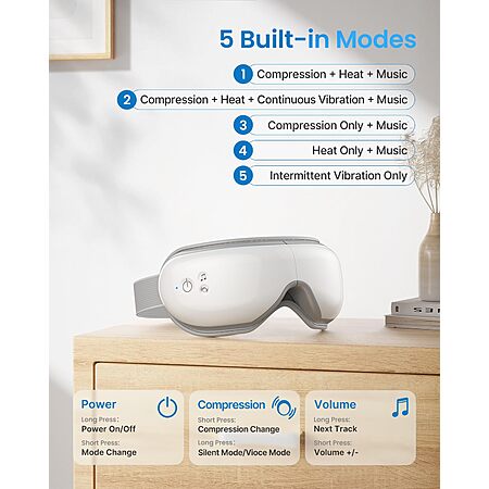 - Please note:1. The product will cause normal noise <45dB during use 2. You can adjust to low compression when you feel too strong 3. Please find out if you are allergic to protein leather before use. 4.This product is not suitable for individuals who have undergone eye operations, have retina conditions, cataracts, glaucoma, etc.