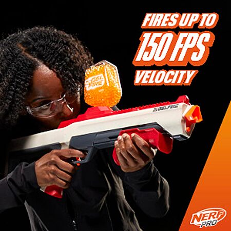 NERF Pro Gelfire Raid Blaster, Fire 5 Rounds at Once, 10,000 Gel Rounds, 800 Round Hopper, Eyewear, Toys for Teens Ages 14 & Up