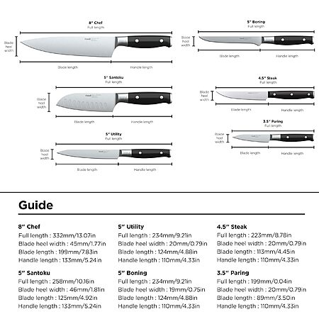 - GERMAN STAINLESS STEEL: Premium blades forged from German stainless steel are rust resistant and strong enough for all your kitchen tasks.
