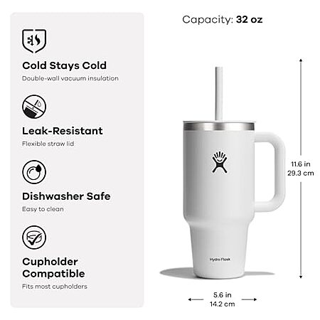 $20.97: 32-Oz Hydro Flask Travel Tumbler Stainless Steel Insulated Cup with Lid and Straw at Amazon