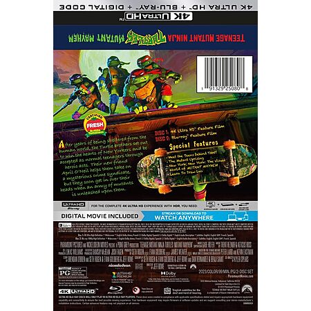 Amazon [amazon.com] has Teenage Mutant Ninja Turtles: Mutant Mayhem Steelbook (4K UHD + Blu-Ray + Digital) for $20.99. Shipping is free w/ Prime or on $35+.