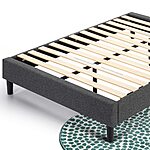 Amazon has ZINUS Curtis Upholstered Platform Bed Frame w/ Wood Slat Support (Grey, Queen) on sale for $59.99. Shipping is free.