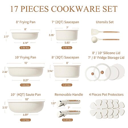 17-Piece CAROTE Pots and Pans Set, Nonstick Cookware Set (Cream White or Black) $80.00 + Free Shipping