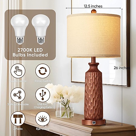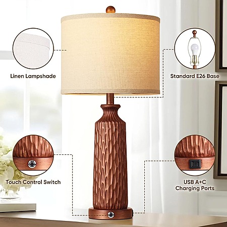 Set of 2 Table Lamp w/ USB Ports, (Brown) $51.19 + Free Shipping