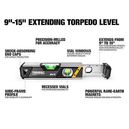 15" TOUGHBUILT Aluminum 2 Vial Box Beam Level $24 & More + Free In-Store Pickup at Lowes