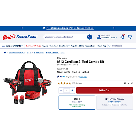 Milwaukee M12 - 2 tool kit $89 & More @ Blain's Farm & Fleet