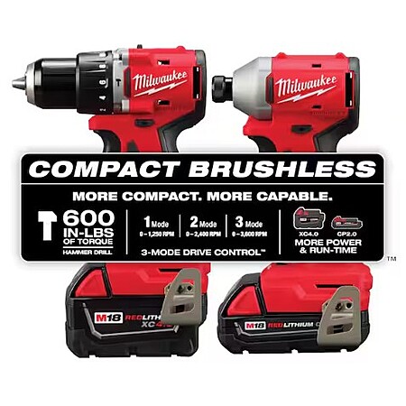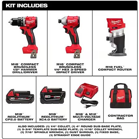 Milwaukee M18 Compact Brushless Hammer Drill/Impact Combo Kit (2-Tool) w/2 Batteries & M18 FUEL Router - HD $299
