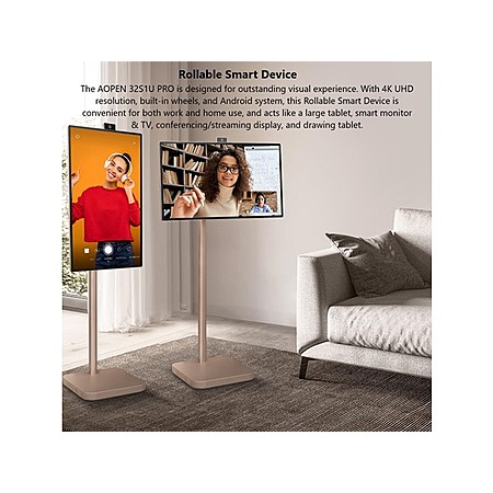 The AOPEN 31.5" 4K UHD Touch Rollable Smart Device, also known as the AOPEN JoinMe 32S1U Pro, is a multifunctional device that serves as a large tablet, smart monitor, TV, conferencing display, and drawing tablet. Below is a comprehensive overview of its specifications and features: