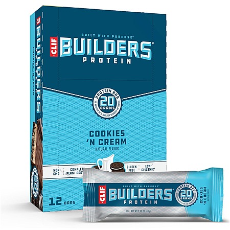 12-Pack 2.4-Oz CLIF Builders Plant Based Protein Bars (Cookies 'n Cream)
