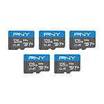 5-Pack 128GB PNY Elite U1 Rated V10 A1 microSDXC Memory Cards