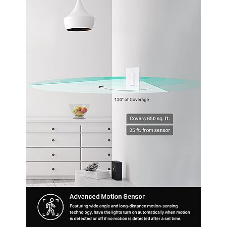 • Completely hands-free and smart operation of your connected lights. The switch automatically turns lights on when motion is detected and turns off after a preset time. Ideal for areas such as bedrooms, hallways and restrooms where hands-free operation is ideal.