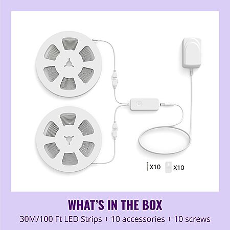 Model: WiZ RGB LED Light Strip – 100 ft Cut to Fit, 16 Million Colors + Shades of White, Preset Light Modes, Connects to Your Wi-Fi, Voice/App Control, Works with Google Home, Alexa and HomeKit