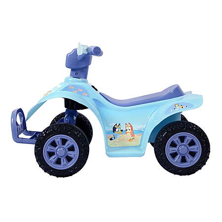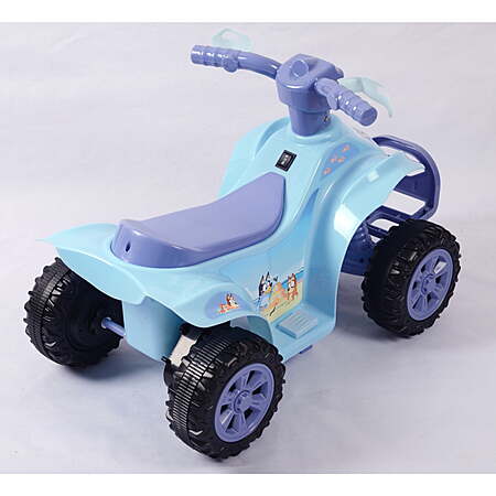 | Product Description: | Embark on a delightful adventure with the Bluey 6V ATV Quad Battery Powered Ride On, a vibrant electric quad that brings the charming world of Bluey to life. This quad is perfect for young fans of the beloved children's series, featuring colorful Bluey graphics that are sure to spark joy and imagination. Powered by a battery motor, it offers a smooth and stable ride, making it safe and enjoyable for little ones to navigate around the yard or park. The quad is built with a low center of gravity and a wide wheelbase, enhancing stability and minimizing the risk of tipping, which is essential for the safety of young riders. Operation is a breeze with a simple push-button, allowing children to take control and build confidence in their riding skills. The included rechargeable battery ensures that the fun continues without frequent interruptions for charging. Additionally, the robust all-terrain wheels allow the quad to travel over different surfaces, from grass to gravel, making every ride an exciting exploration. Designed specifically for toddlers, the Bluey ATV Quad is an excellent choice for introducing children to the joy of riding, combining engaging design, safety features, and the playful theme of Bluey. Bluey Themed Design: Colorfully decorated with Bluey graphics, capturing the playful spirit of the popular children's show. 6V Electric Motor: Provides a gentle and reliable ride, perfect for little explorers. Easy Push-Button Operation: Allows young riders to operate the quad effortlessly, promoting independence. Stable and Safe Construction: Features a low center of gravity and a wide wheelbase to ensure stability and safety for young children. Rechargeable Battery System: Comes with a 6V battery that delivers consistent performance and hours of fun. All-Terrain Wheels: Equipped with durable wheels that are capable of handling various types of surfaces for adventurous rides. Ideal for Toddler Adventurers: Specifically designed for toddlers, offering a safe and exciting introduction to riding. |