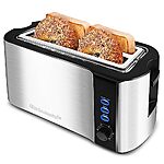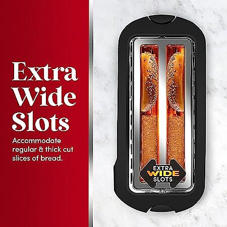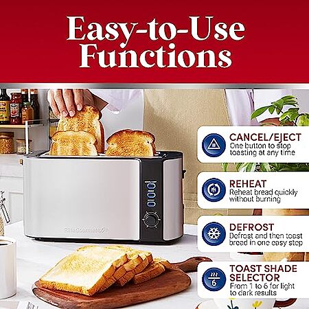 Model: Elite Gourmet ECT-3100 Long Slot 4 Slice Toaster, Reheat, 6 Toast Settings, Defrost, Cancel Functions, Built-in Warming Rack, Extra Wide Slots for Bagels & Waffles, Stainless Steel & Black