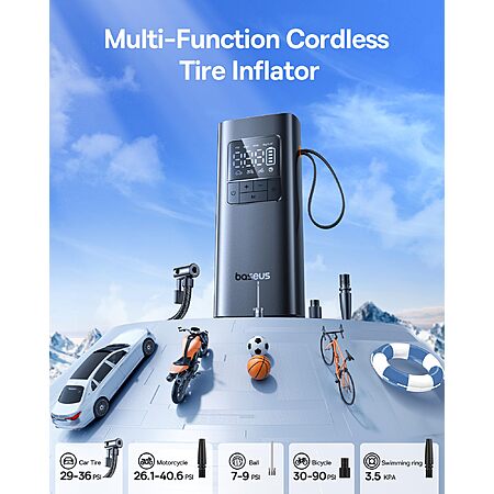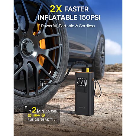 Baseus Tire Inflator Portable Air Compressor, 2X Faster Inflation, 150PSI Cordless Tire Inflator Pump $19.99