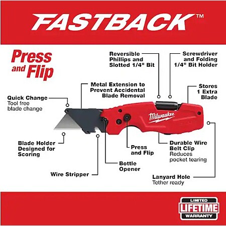 Milwaukee FASTBACK 5- In-1 Folding Knife with 3 in. Blade + FASTBACK 6-in-1 Folding Utility Knife (2-Piece) - Home Depot $34.97