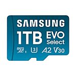 Model: SAMSUNG EVO Select microSD Memory Card + Adapter, 1TB microSDXC, Up to 160 MB/s, UHS I, C10, U3, V30, A2, for Mobile Phone, Smartphones, Nintendo-Switch, and Tablets (MB-ME1T0SA/AM)