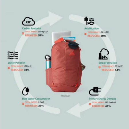 Features:- All fabrics are made from recycled content, resulting in 57% reduction in the carbon footprint compared to a conventional nylon pack