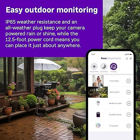 Model: Roku - Outdoor Camera - Home Security - IP65 Weather Resistant Wired Security Camera with 1080p HD Night Vision - White