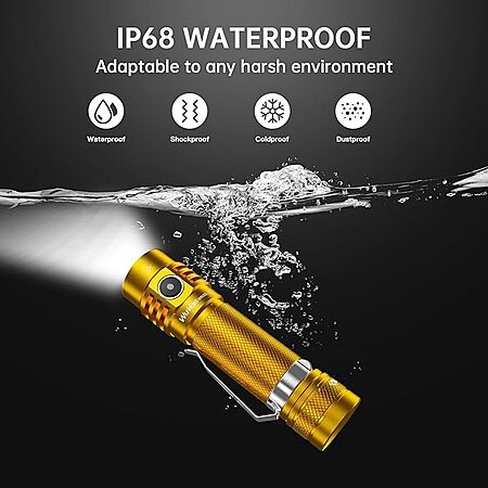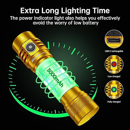 Wurkkos TLF Golden WK03 1200 Lumen EDC Flashlight w/ 18650 Battery (Black or Gold)