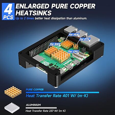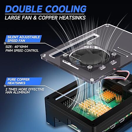 Miuzei Case for Raspberry Pi 5 with Fan Cooling and 4 Pcs Copper Heatsinks $1.99