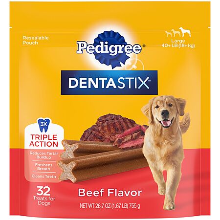 Model: Pedigree Dentastix Beef Flavor Large Dog Dental Treats, 26.7 oz., Count of 32