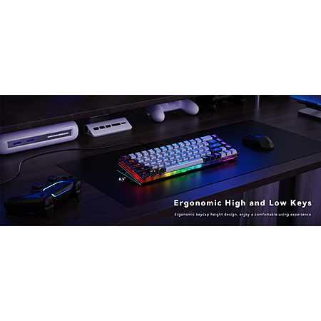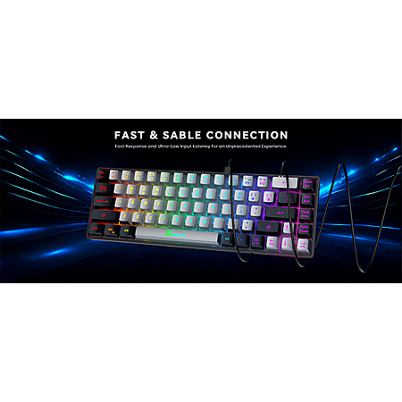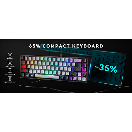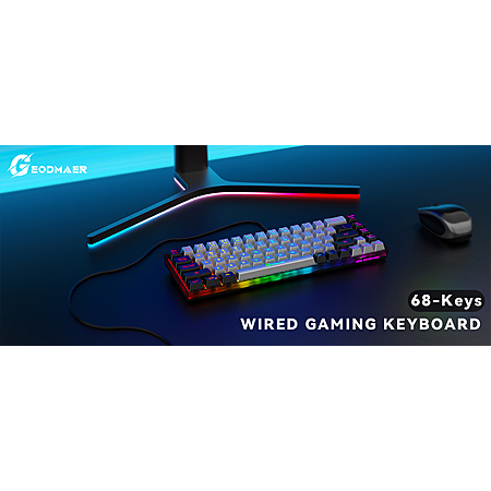 【65% Compact Design】GEODMAER Wired gaming keyboard compact mini design, save space on the desktop, novel black & silver gray keycap color matching, separate arrow keys, No numpad, both gaming and office, easy to carry size can be easily put into the backpack