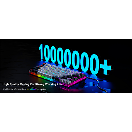 【Strong Working Life】Wired gaming keyboard has more than 10,000,000+ keystrokes lifespan, each key over UV to prevent fading, has 11 media buttons, 65% small size but fully functional, free up desktop space and increase efficiency